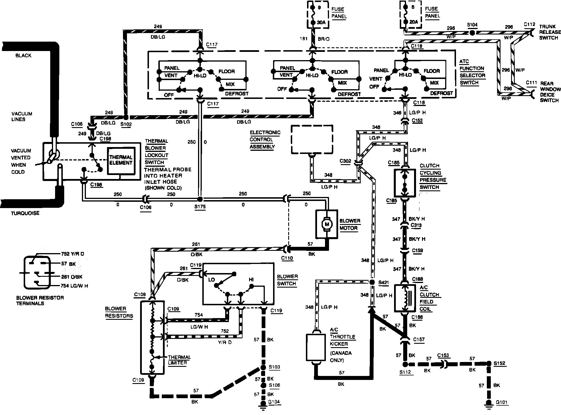 Fig. 12 Air conditioning & heater wiring circuit. 1983 Continental: