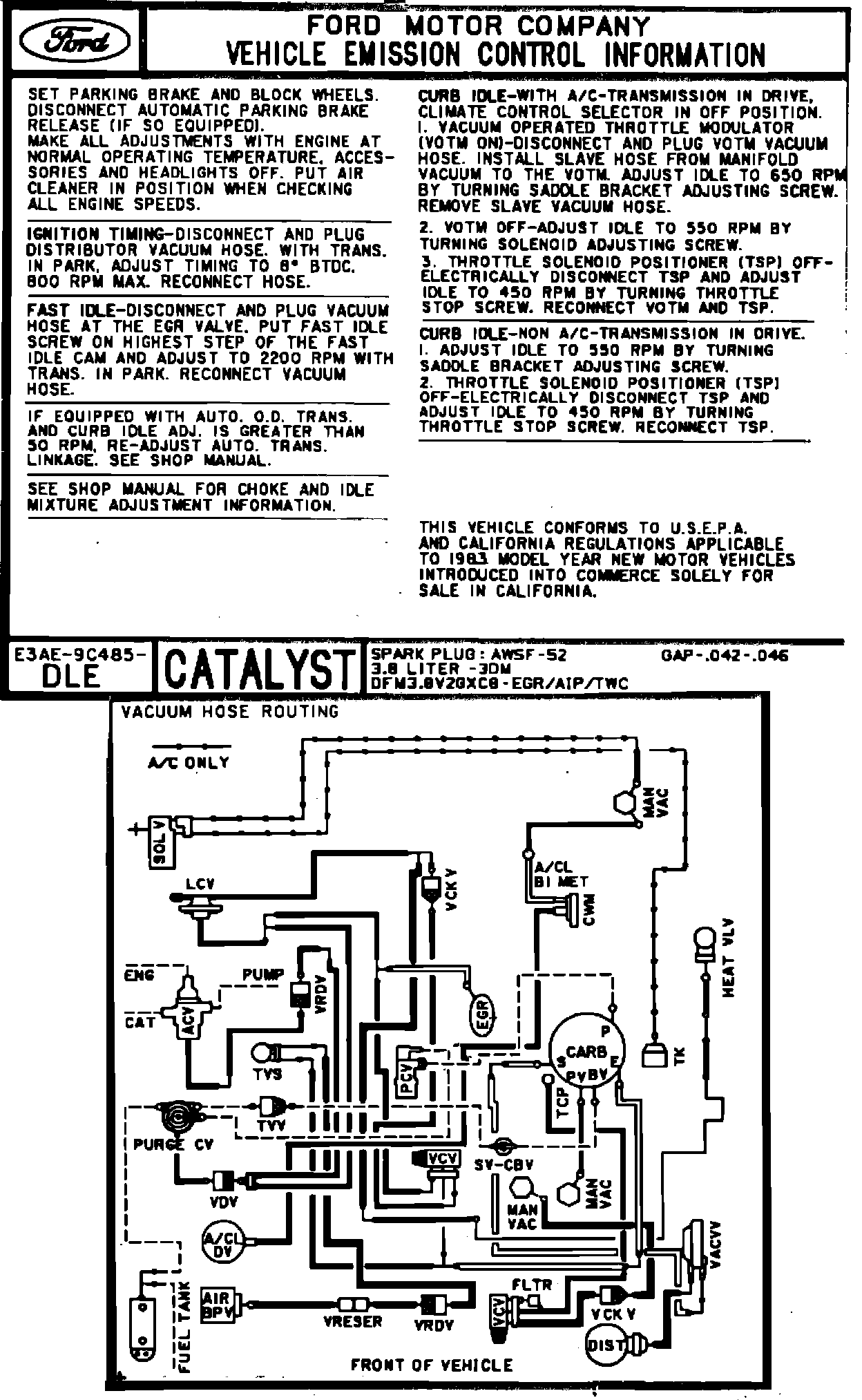 MODEL YEAR: 1983 - ENGINE: 3.8L