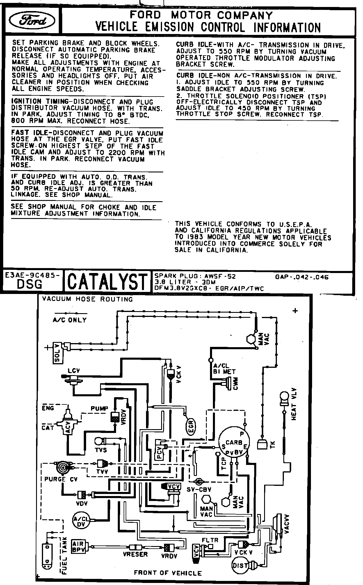 MODEL YEAR: 1983 - ENGINE: 3.8L