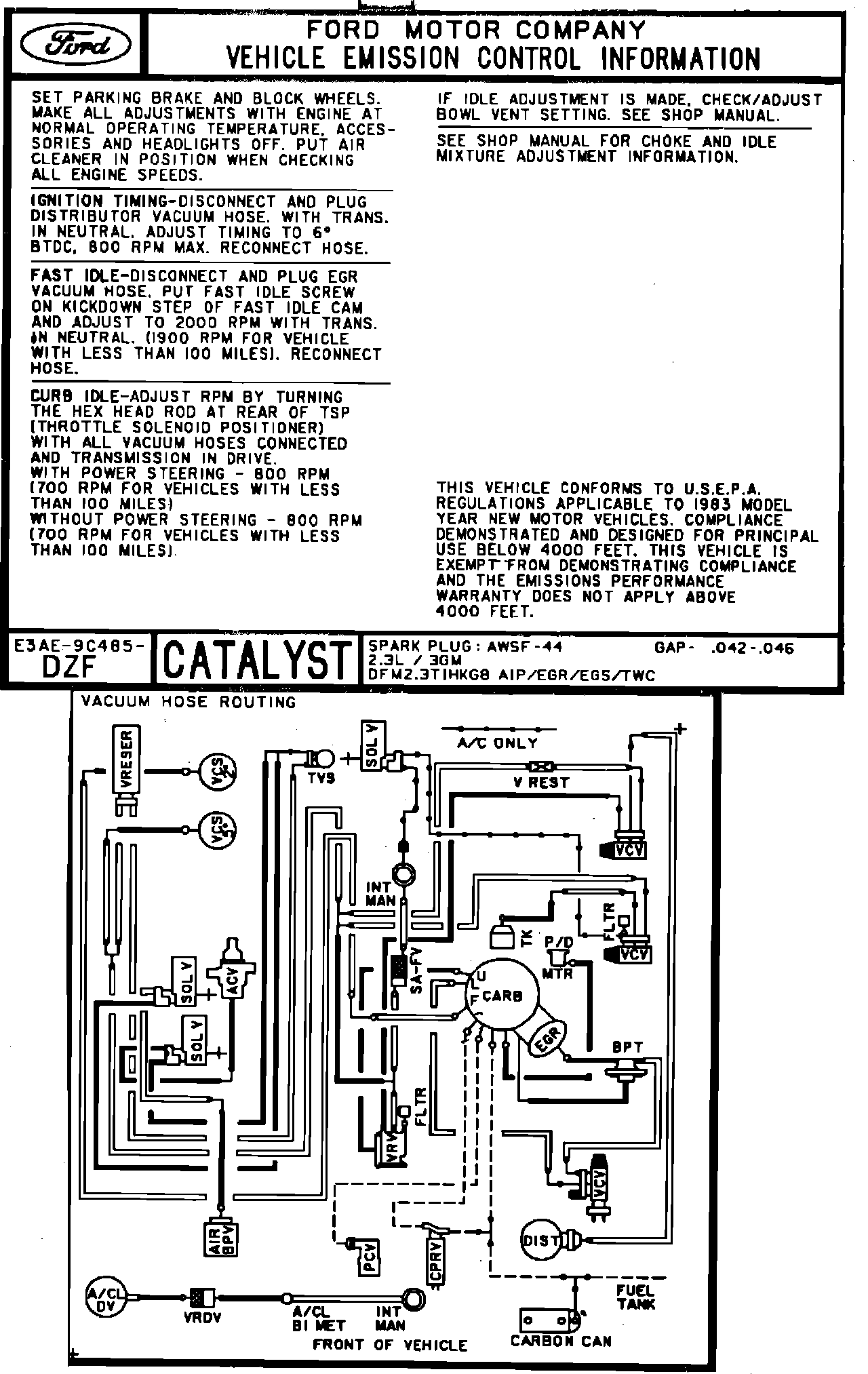 MODEL YEAR: 1983 - ENGINE: 2.3L