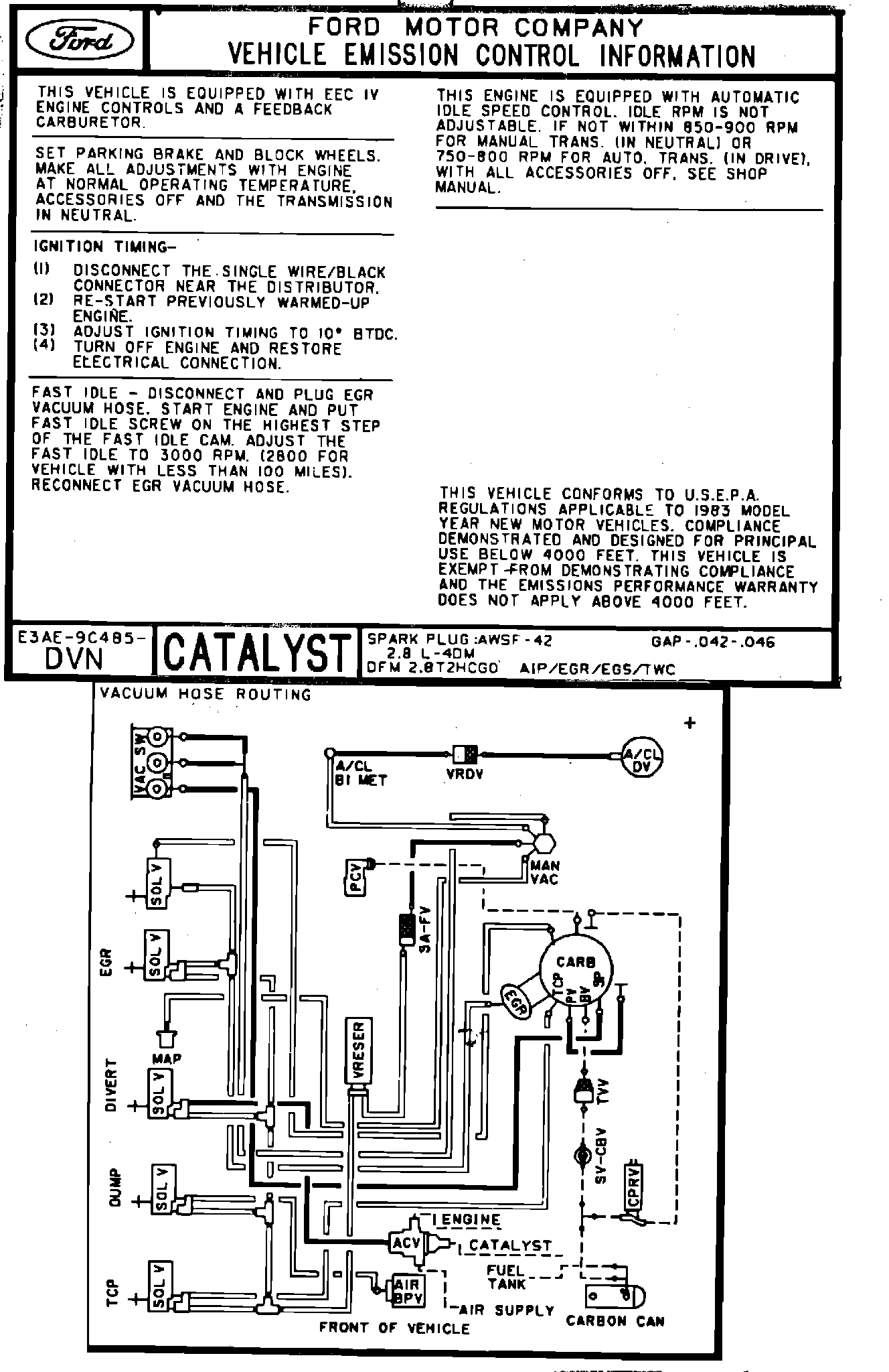 MODEL YEAR: 1983 - ENGINE: 2.8L