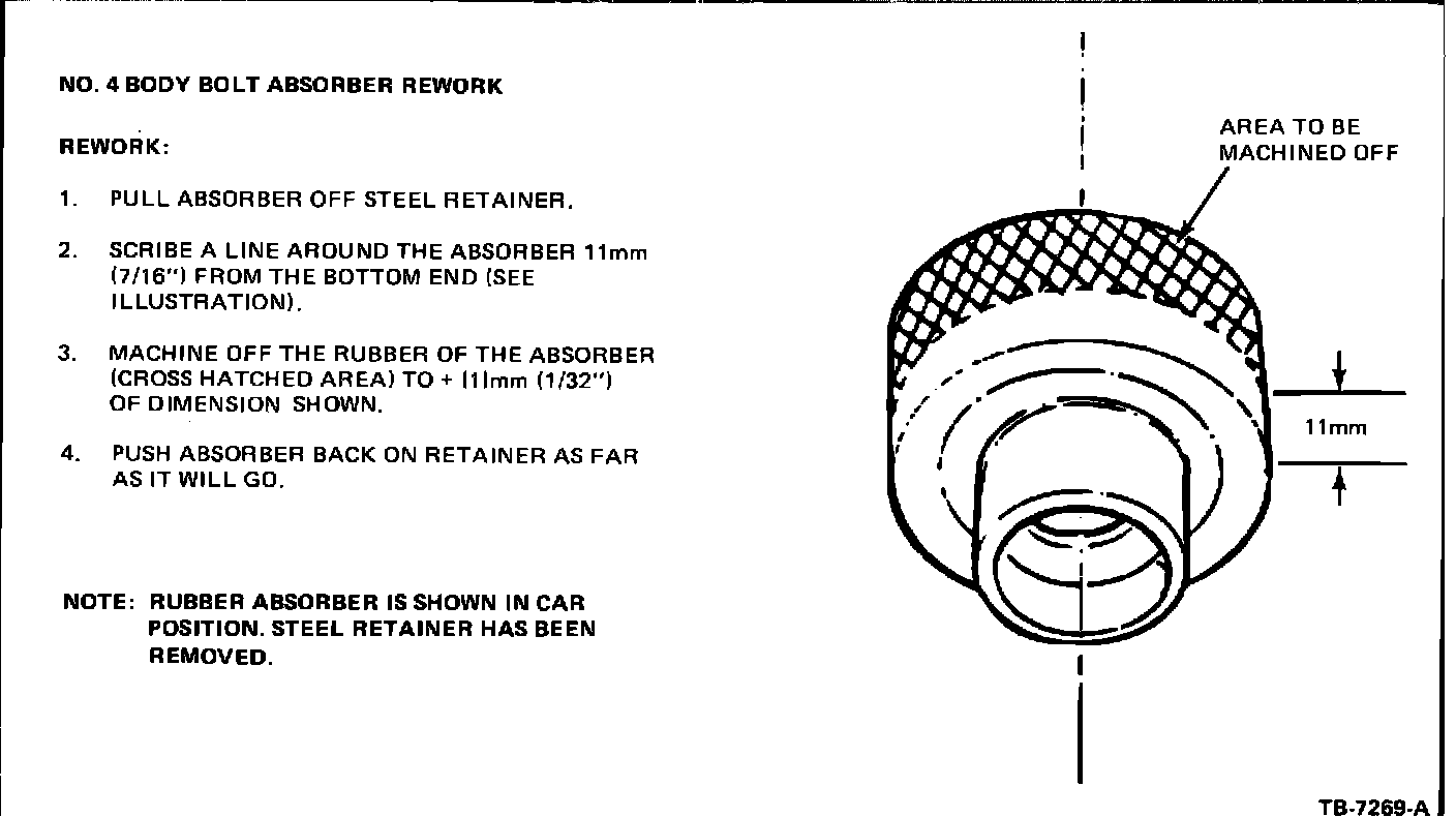 5. Using a new number 4 absorber/retainer assembly (E0AZ-540039-E), rework the rubber absorber as shown in Figure 2. Only the rubber is to be reworked, not the steel retainer.