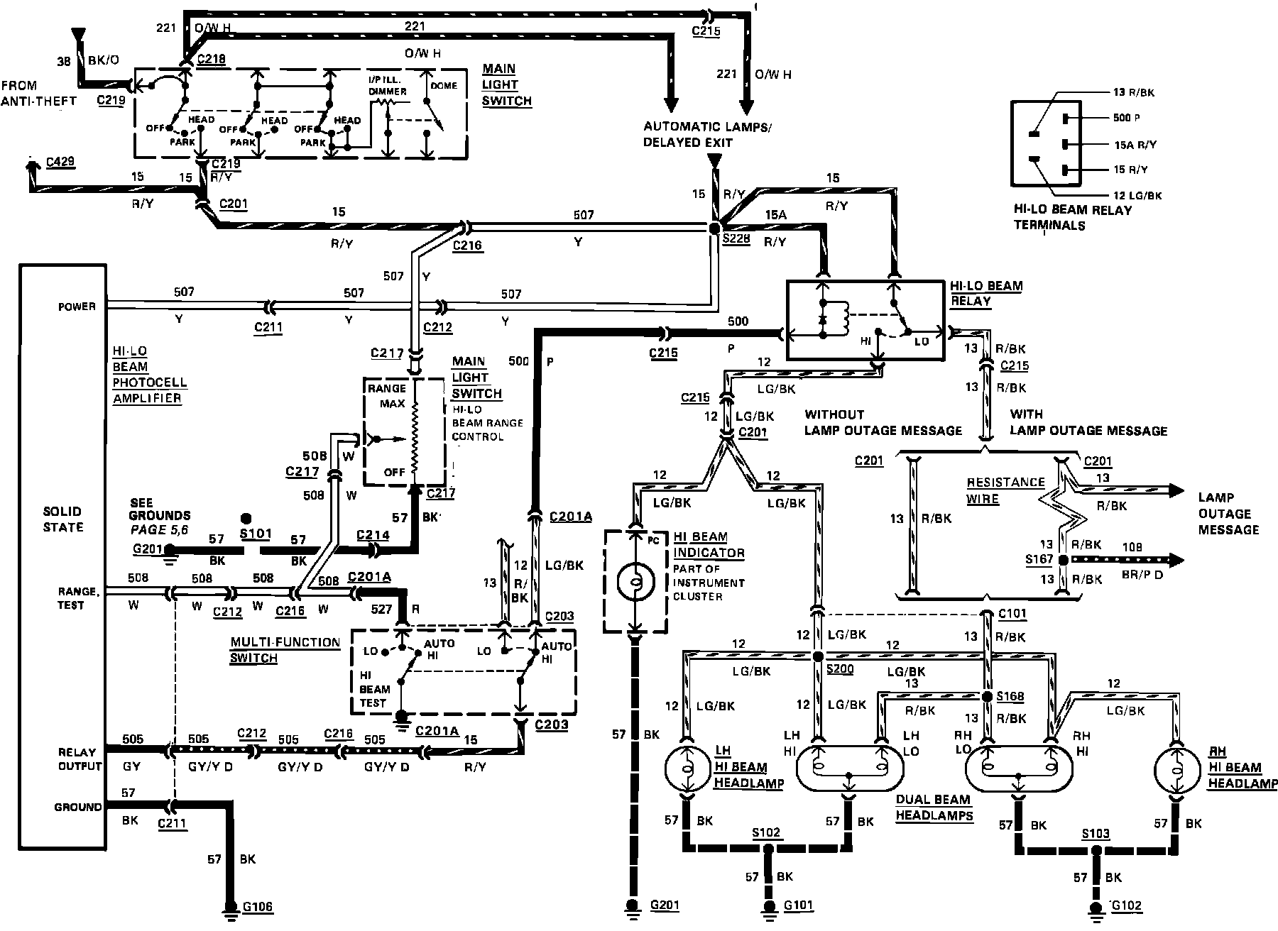 Fig. 35 Automatic headlamp dimmer wiring circuit. 1983 Mark VI & 1983-84 Town Car: