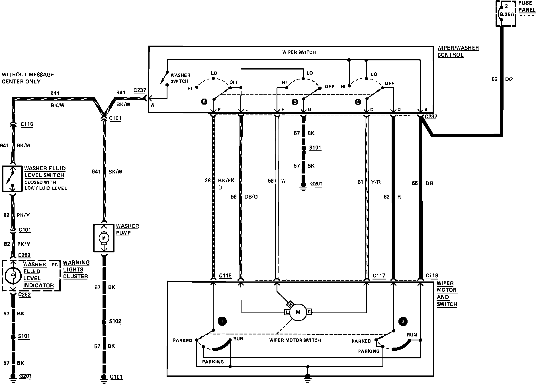 Fig. 183 Windshield wiper & washer wiring circuit. 1983 Mark VI & 1983-84 Town Car less intermittent wiper: