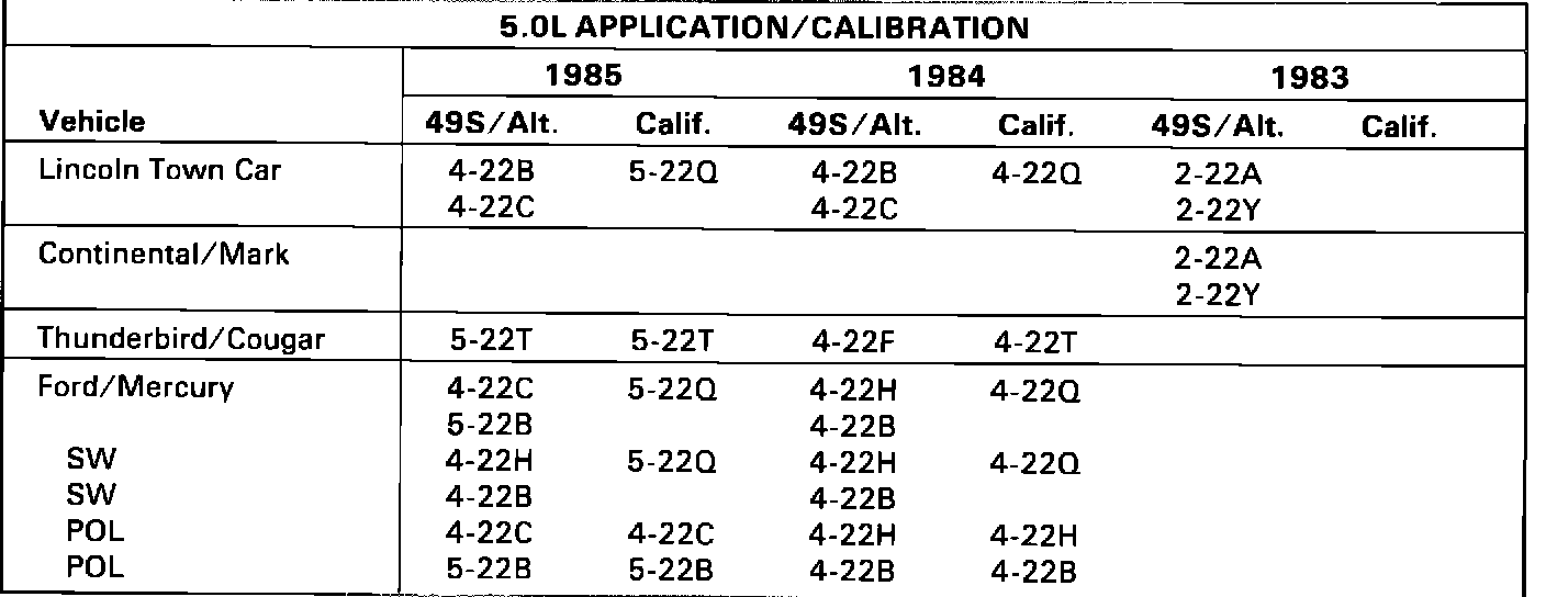CALIBRATIONS: All with 5.0L EEC III and IV