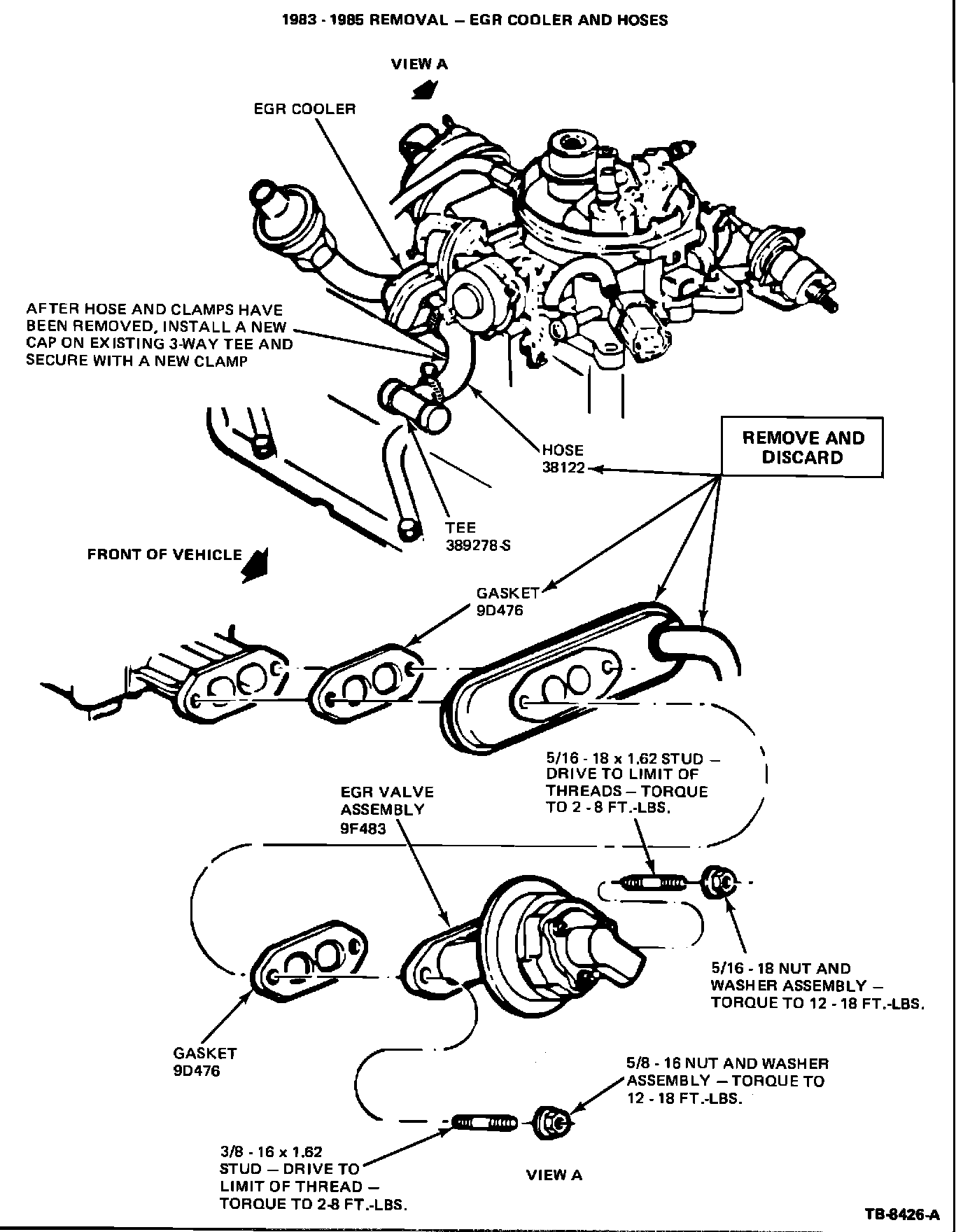 8. Install new gasket, new EGR valve and attaching nuts. Torque nuts to 12-18 ft. lbs.; reconnect EGR vacuum hoses.