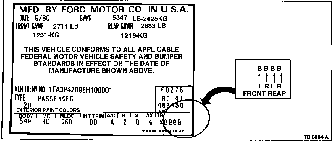 The following charts list the front and rear spring usage on all 1983 car lines. The springs installed at vehicle assembly are computer selected based on vehicle weight and suspension geometry. The installed springs are identified by a code located on the door VIN label (Figure 1). The charts list these spring codes, appropriate part numbers and usage. Note that springs are listed in increasing load values in groups according to rates. Within a rate group installing a higher load spring would increase the vehicle ride height and conversely a lower load spring would decrease the vehicle ride height. The following chart indicates an approximate change in bumper to ground height for each increment of spring change.