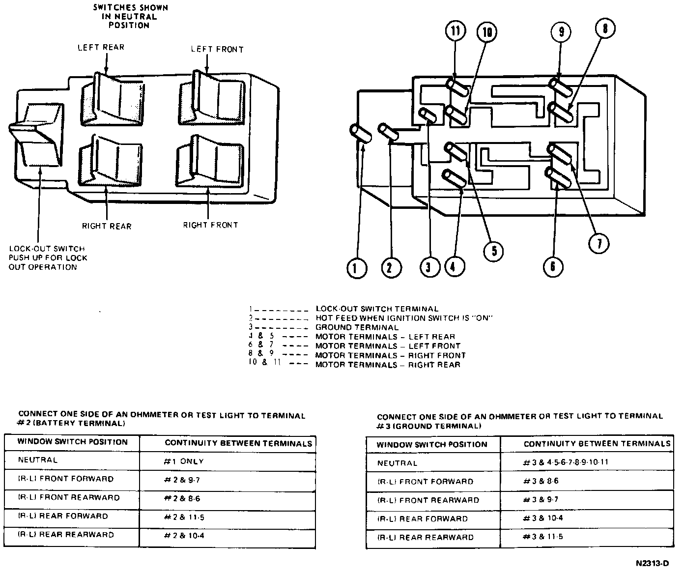 2. With all switches in the NEUTRAL position, pins 4 through 11 should have continuity to pin 3.