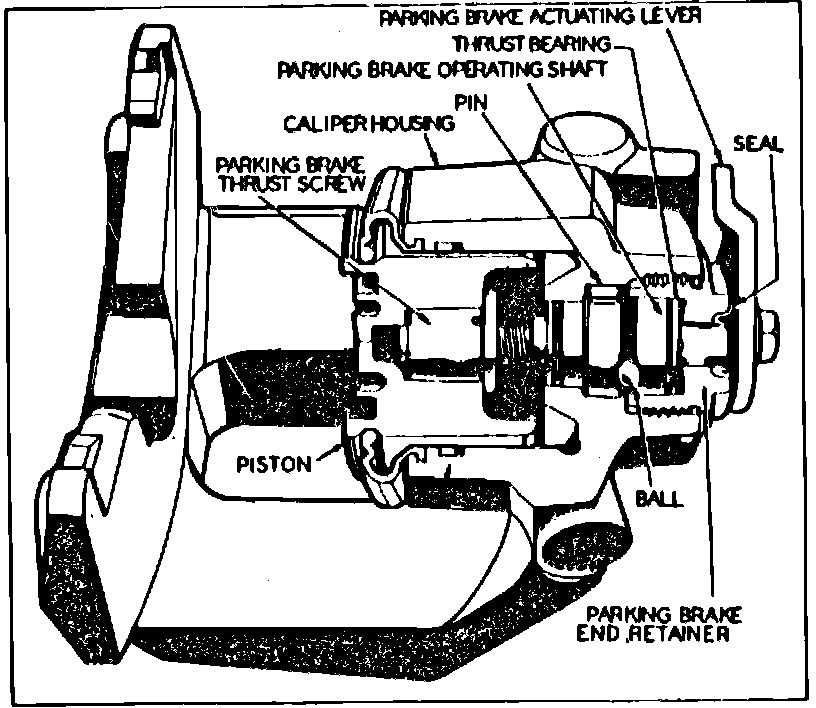 Fig. 2 Caliper housing cutaway to show parking brake mechanism: