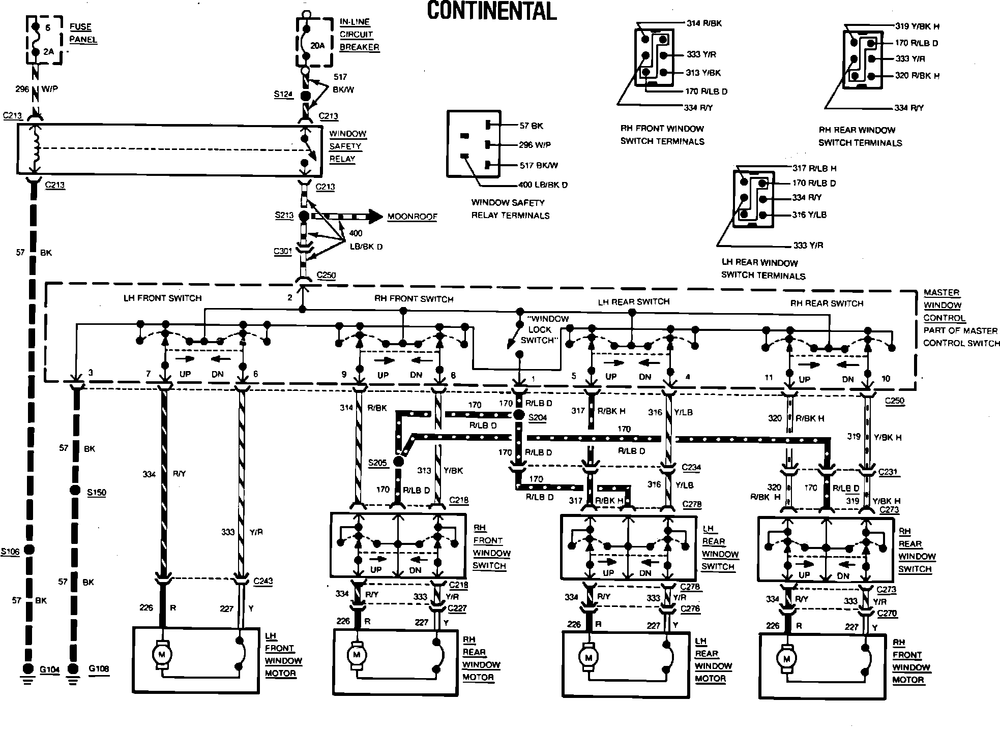 Fig. 158 Power window wiring circuit. 1984 Continental: