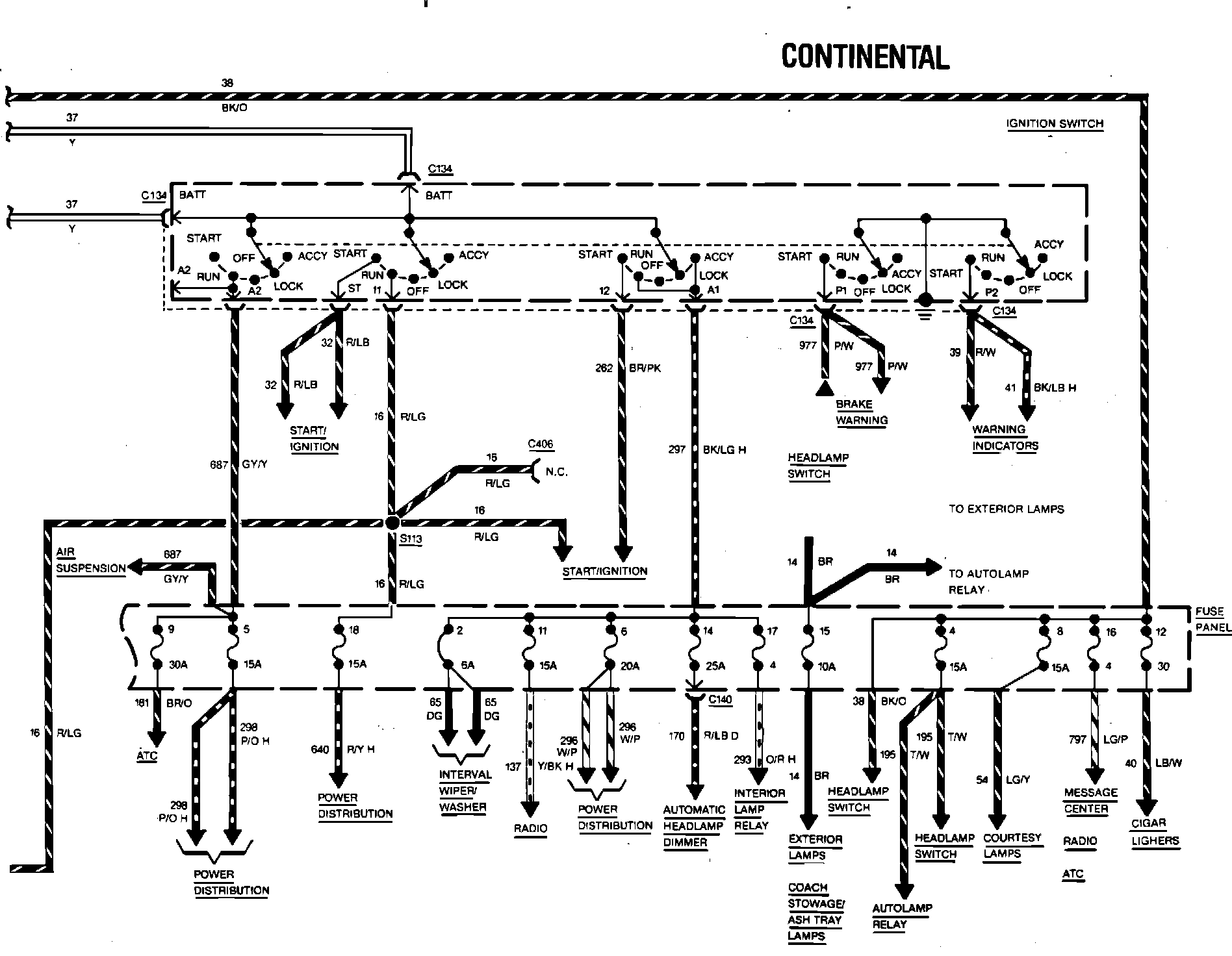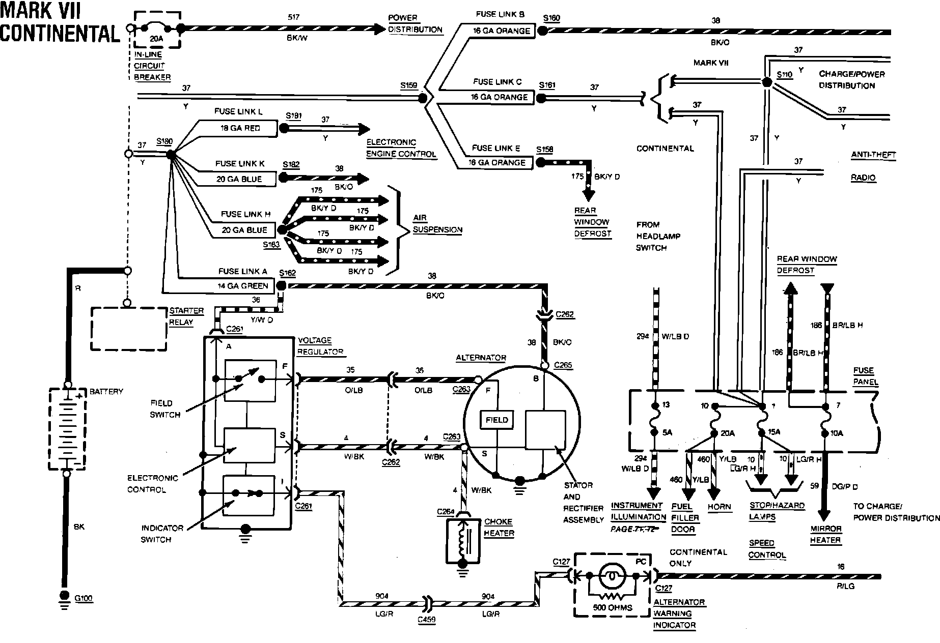 Fig. 43 charging system & power distribution wiring circuit (Part 2 of 2). 1984 Continental: