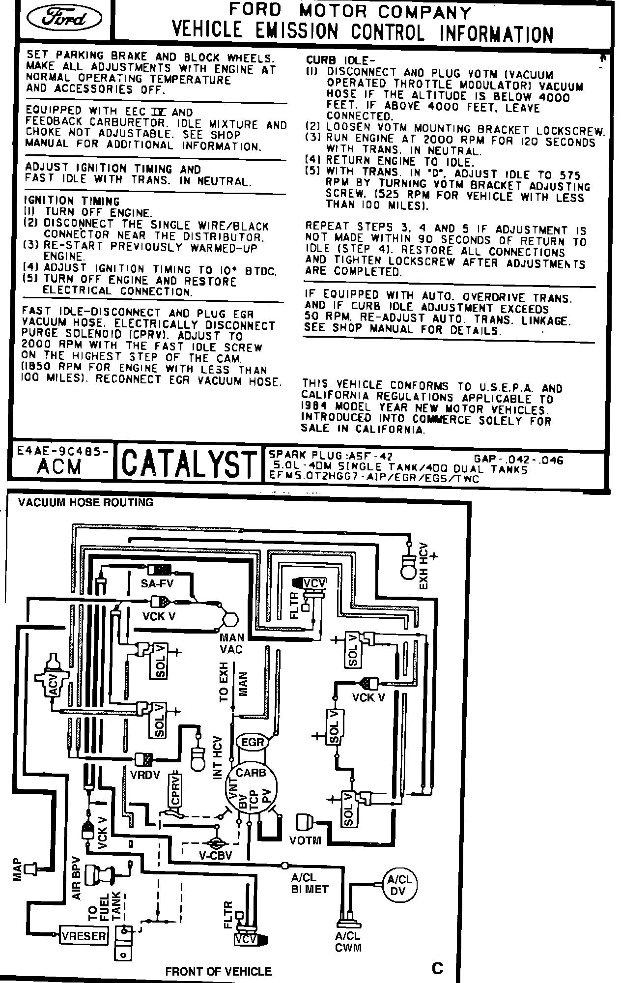 MODEL YEAR: 1984 ENGINE: 5.0L