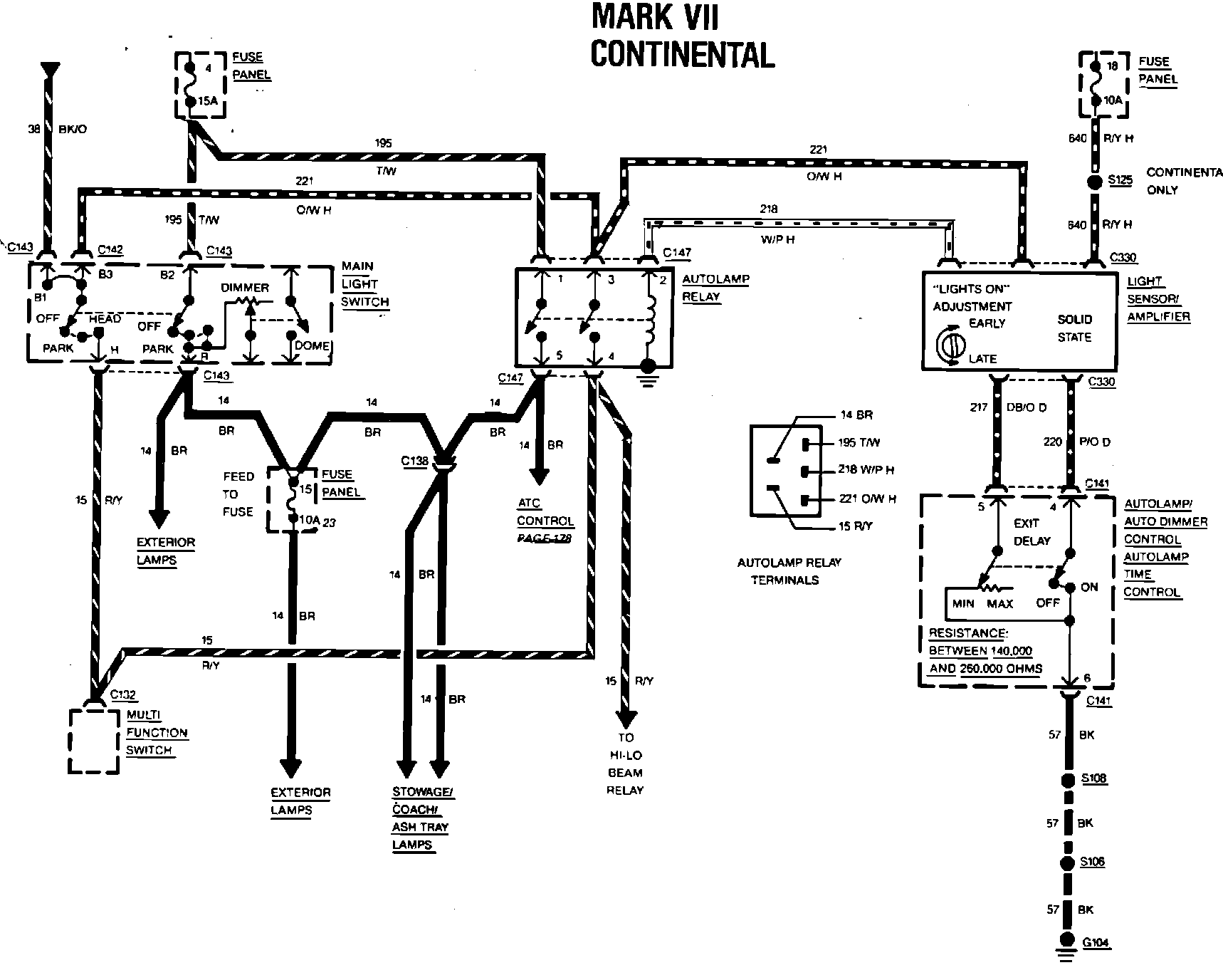 Fig. 32 Autolamp/Delayed exit wiring circuit. 1984 Continental & Mark VII: