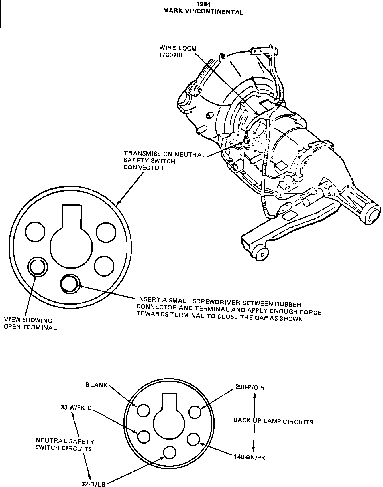 On some 1984 Mark VII and Continental vehicles the 4-way soft moulded wire connector at the transmission neutral start switch may have one or more spread open terminals that will result in a no crank/no start condition.