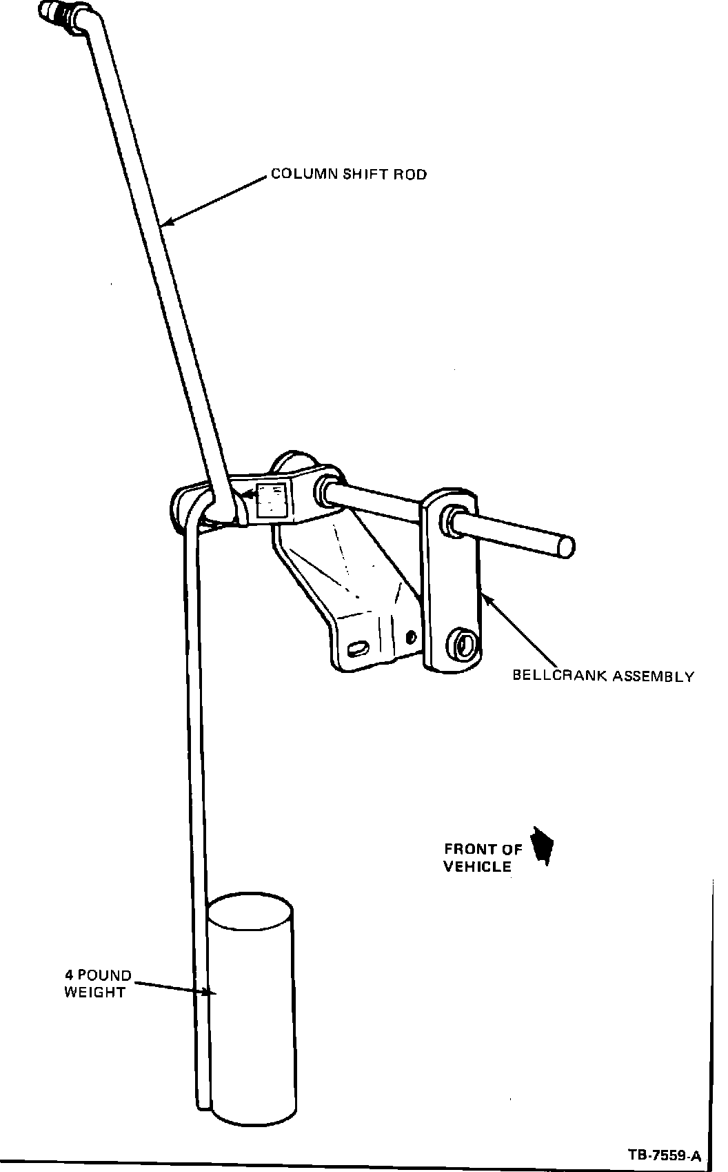 In the event any service to the ZF automatic is performed on the subject vehicles the following revised linkage adjustment procedure should be used. In addition to applying the standard (8) pounds weight at the column mounted gear shift lever during linkage adjustment procedure, a (4) pound weight is also to be hung from the point the column rod joins to the bellcrank lever.