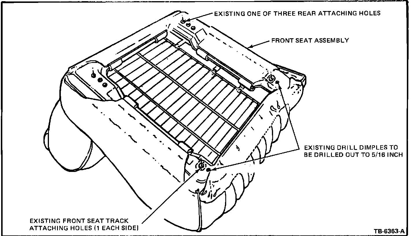 (3) existing sets of seat track rear at- taching holes, and two (2) drill dimples (1 each side) located 20 mm (.87 in.) forward of the existing seat track front attaching holes (Figure 5).