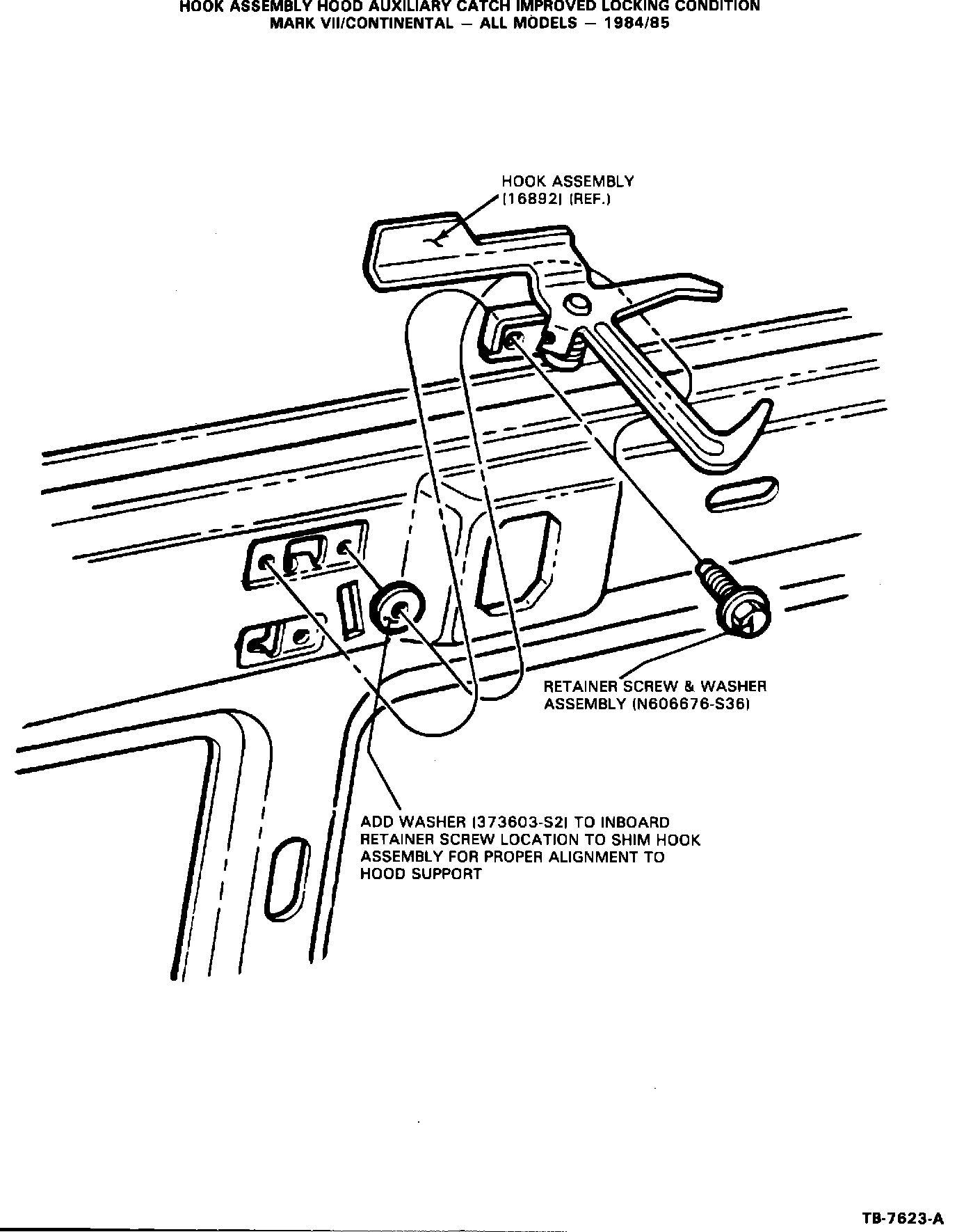 For vehicles built prior to April 13, 1984 dealers may service concerns of hood to hood support mismatch by adding a shim (#373603-S2) to the inboard fasteners of the hood auxiliary catch assembly (Refer to Figure 1).