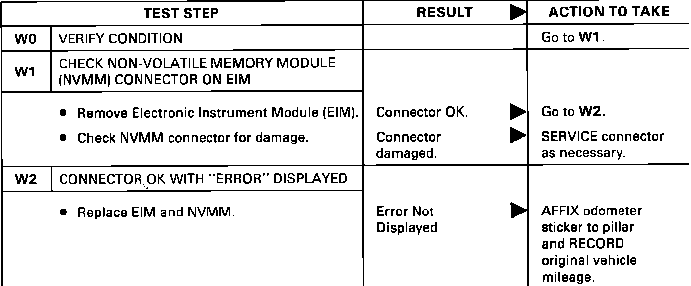 ISSUE: The diagnostic procedure for the electronic instrument cluster "Odometer Displays Error" in the Car Shop Manual, Volume B, Section 33-07 is incorrect.
