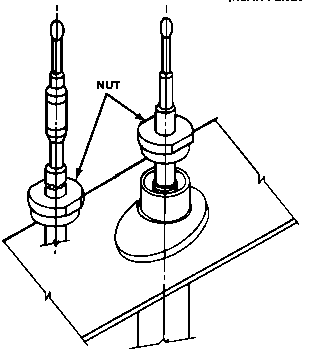 TIGHTEN MAST RETAINING HEX NUT TO FOUR INCH POUNDS.