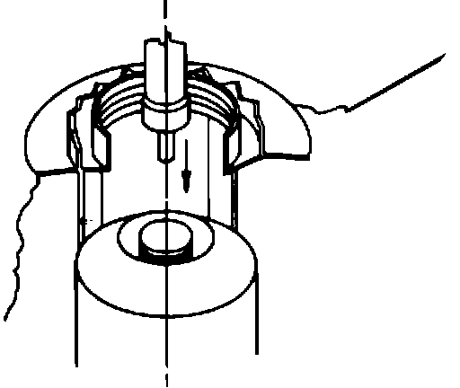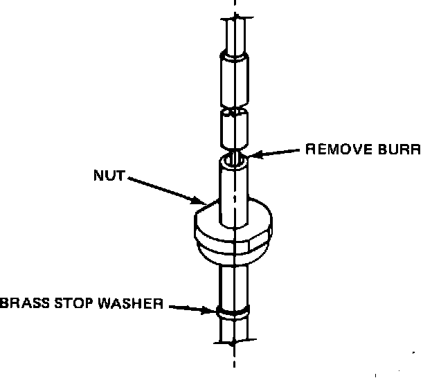 PLACE THE BRASS STOP WASHER AND NUT OVER MAST AND START THREADING IT ON THE STATIONARY TUBE BY HAND. THE STOP WASHER MUST BE PROPERLY ALIGNED TO DO THIS.