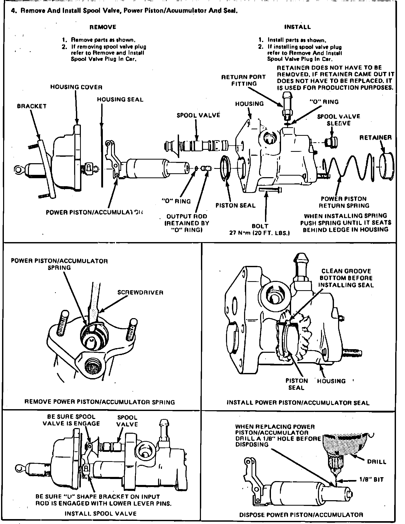 6. Reverse procedure to assemble. Lubricate accumulator can seal with power steering fluid. Ensure accumulator can retaining ring is completely seated in housing groove.