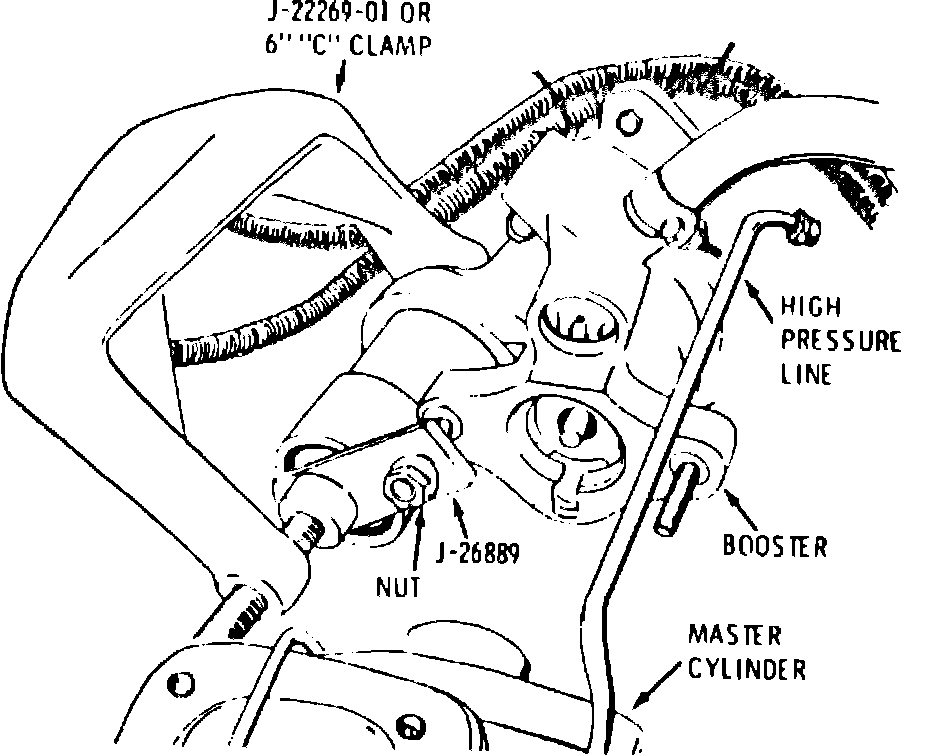 1. Pump pedal rod several times to ensure accumulator is depleted.
