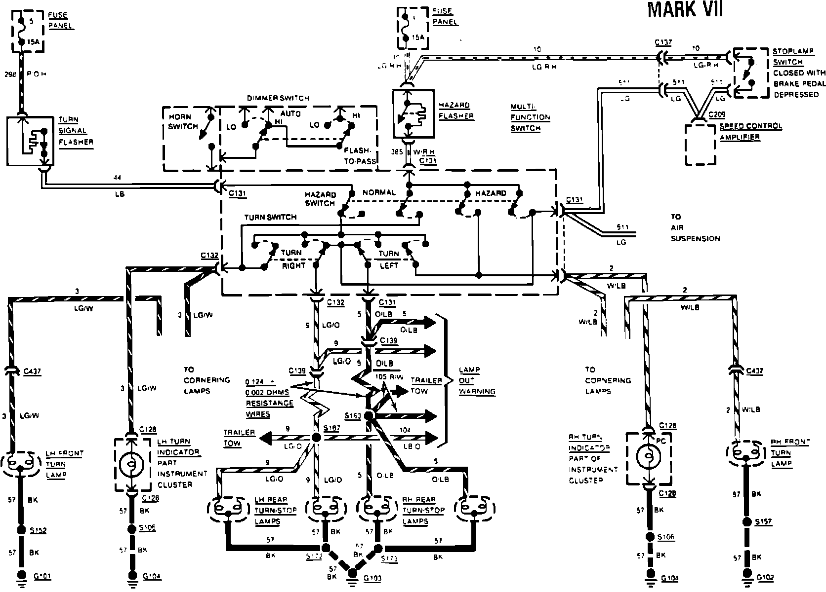 Fig. 176 Stop, turn & hazard lamp wiring circuit. 1984 Mark VII: