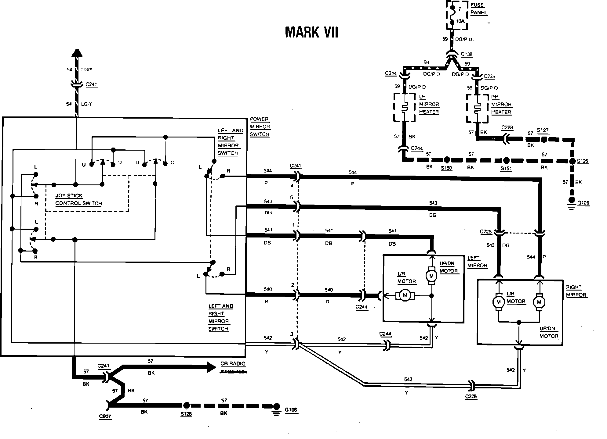 Fig. 148 Power mirror wiring circuit. 1984 Mark VII: