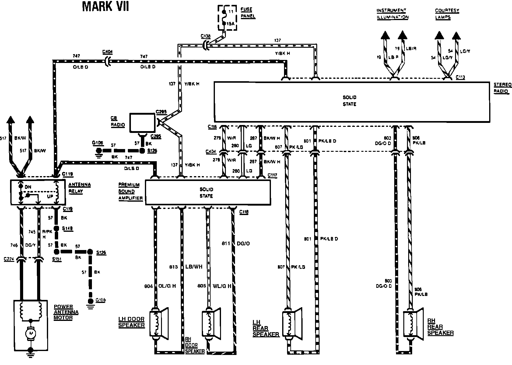 Fig. 163 Radio & speaker wiring circuit. 1984 Mark VII: