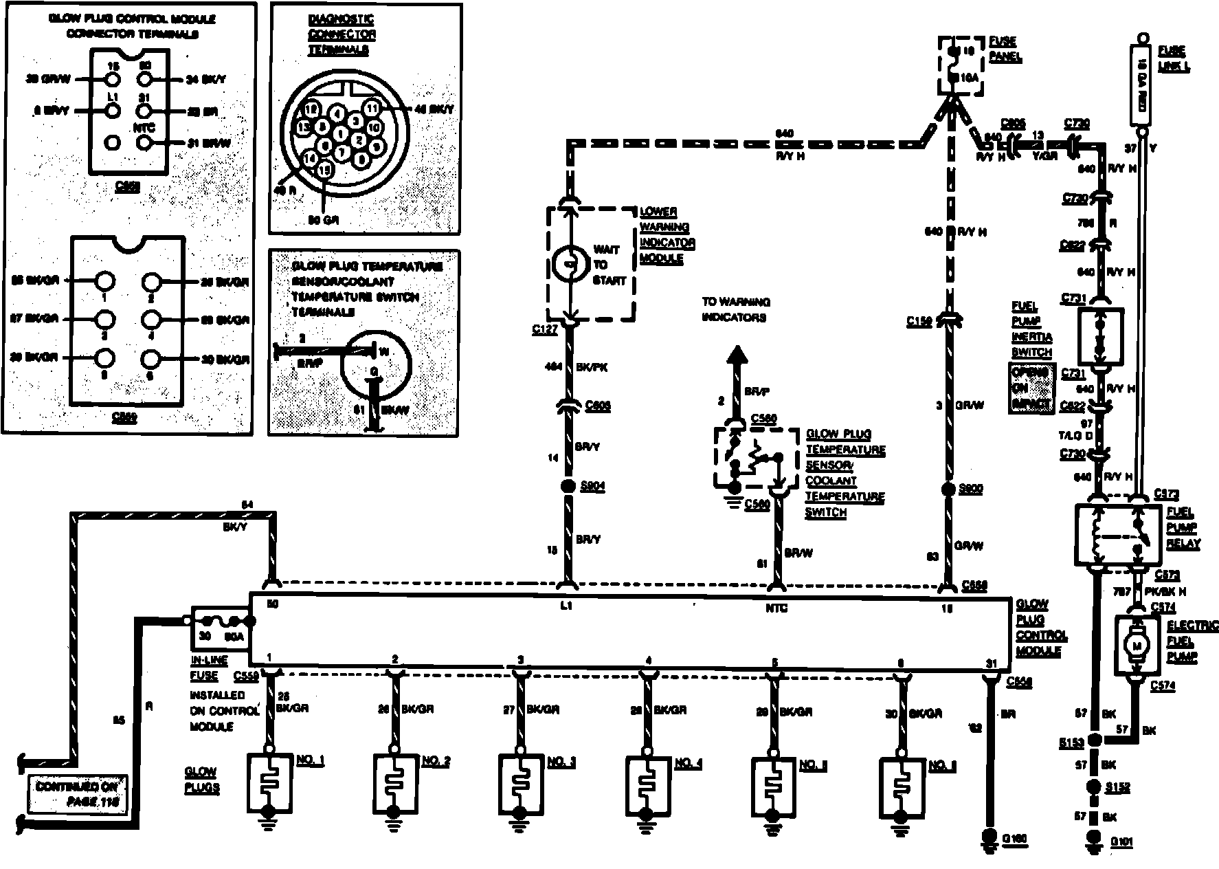 Fig. 48 Glow Plug Control & Start/Run Wiring Circuit (Part 1 of 2). 1985 Continental & Mark VII: