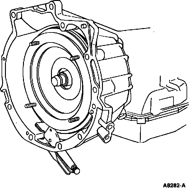 NOTE: Make sure that the upper jaw of the locking pliers contacts the converter while clamped to the converter housing. This will apply adequate pressure on the converter to prevent separation during engine movements and removal.