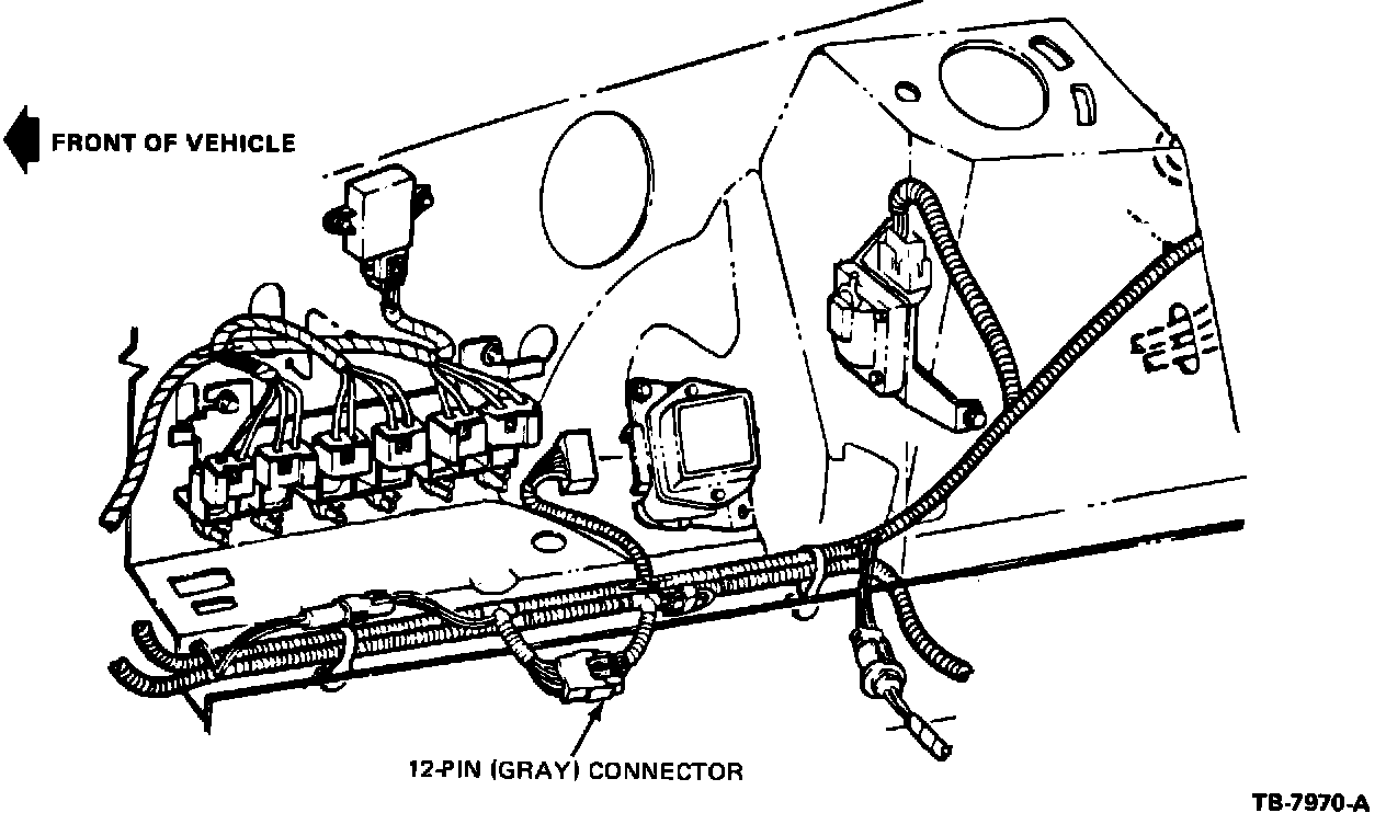 Inspect for a pin mismatch in the 12-pin connector of the -12A581- wiring harness. The connector is located under the coolant overflow bottle and forward of the shock tower (Figure 10).