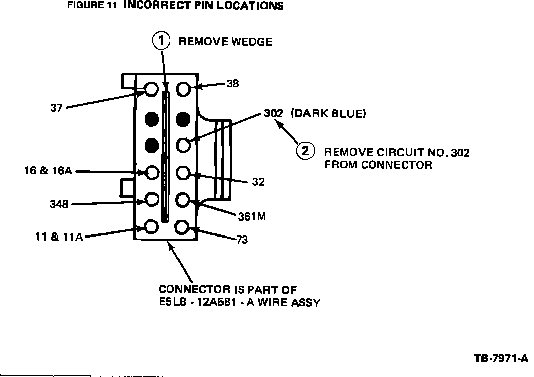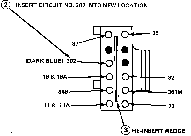 2. Remove the pin for circuit No. 302 (dark blue) and move it to the new location in the same connector (currently vacant), (Figure 12).