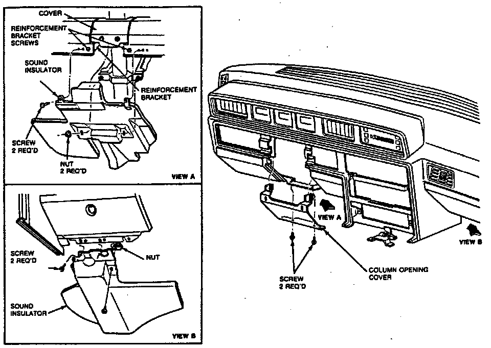 b. Right side of steering column support.