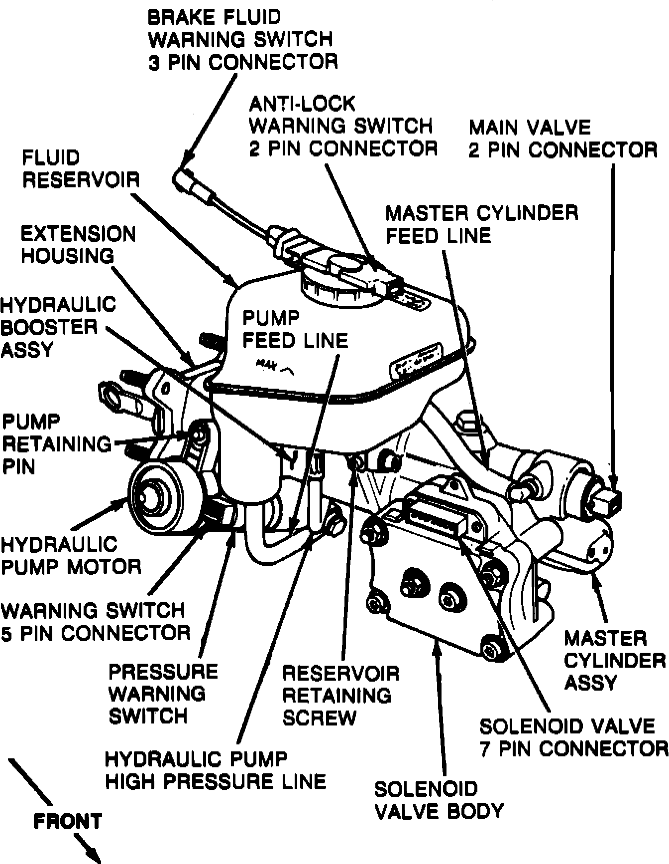 Fig. 2 Master cylinder & hydraulic booster assembly: