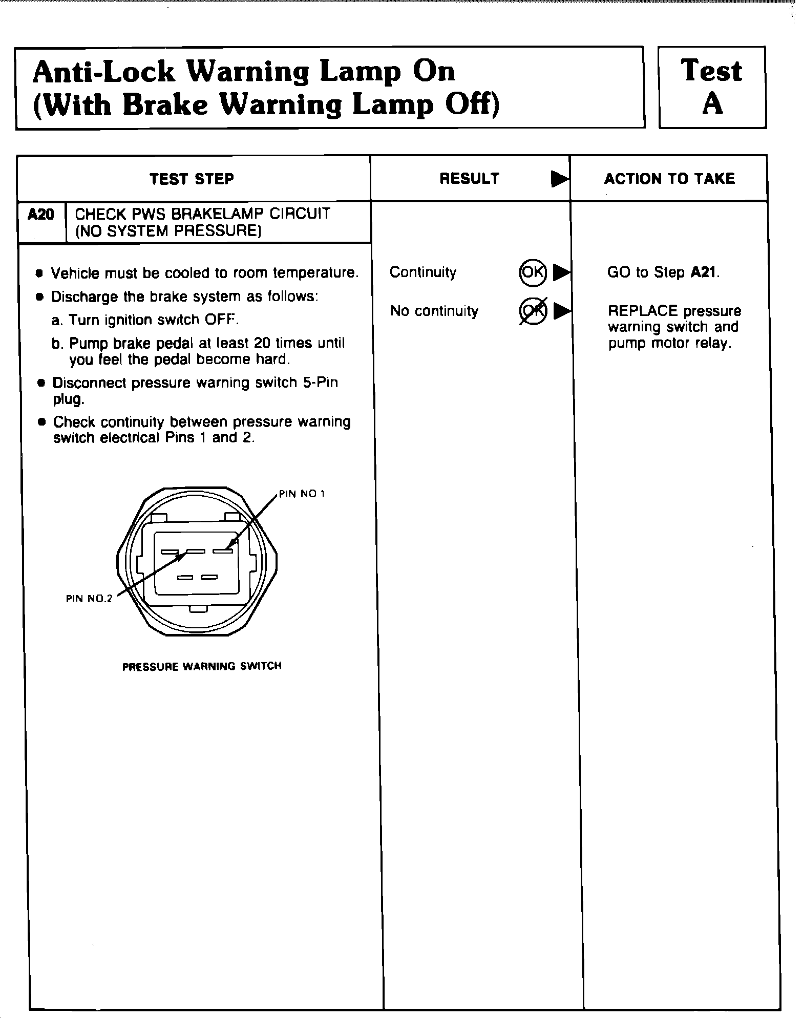 Fig. 36 Anti-skid diagnosis, anti-lock warning lamp ON W/brake warning lamp OFF (Part 21 of 24). 1986---87 exc. Thunderbird: