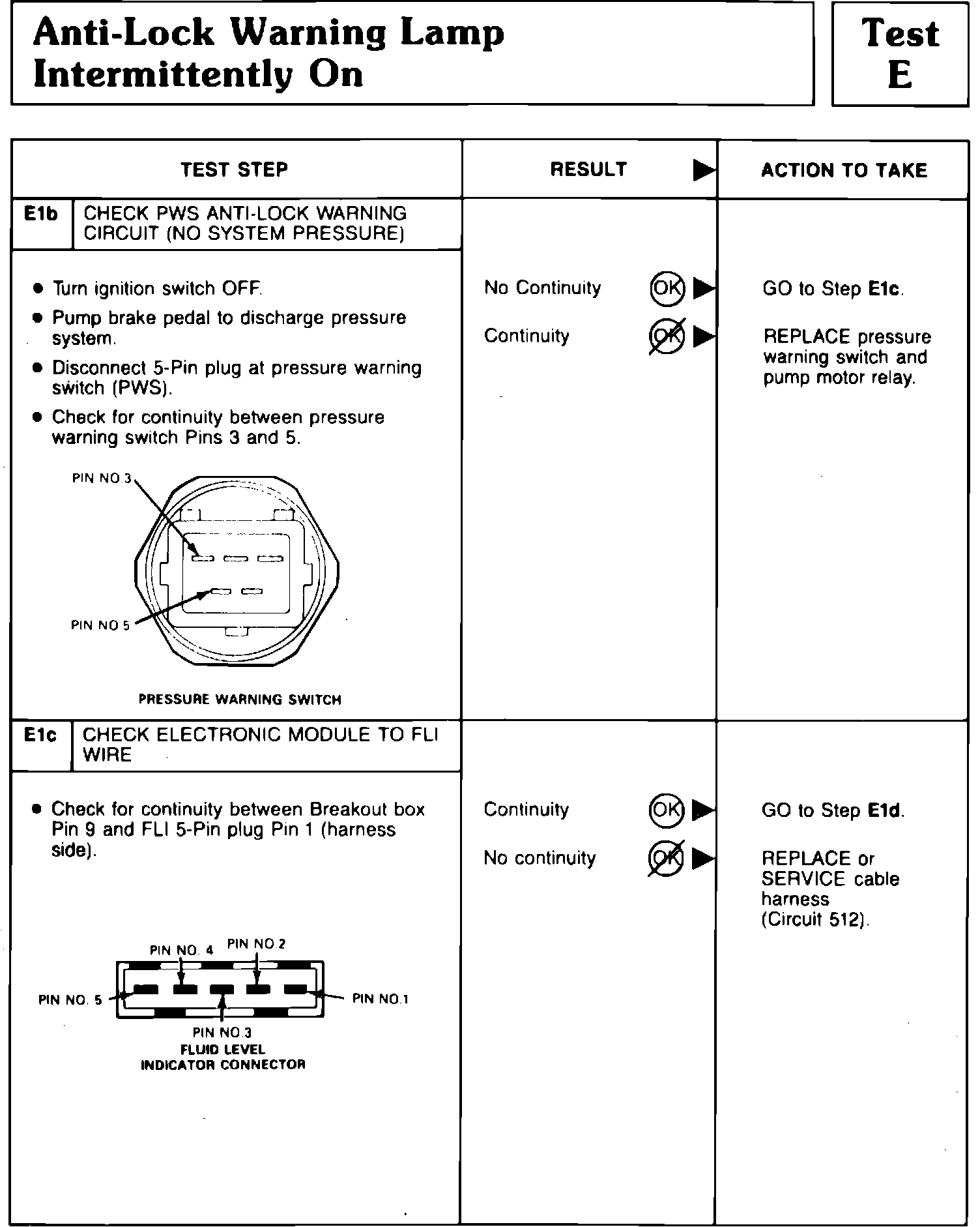 E1C Check Electronic Module to Fluid Level Indicator Wire