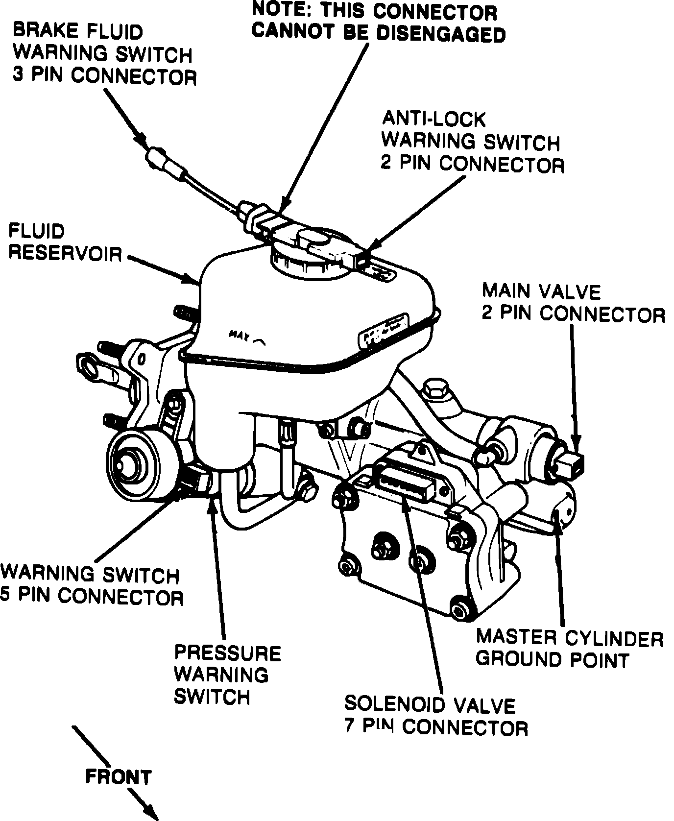 5. Disconnect and plug brake tubes from solenoid valve body.