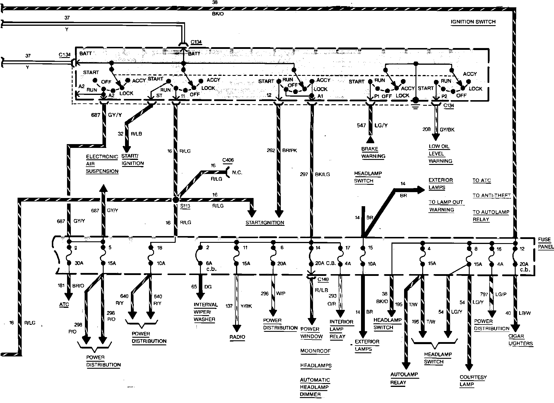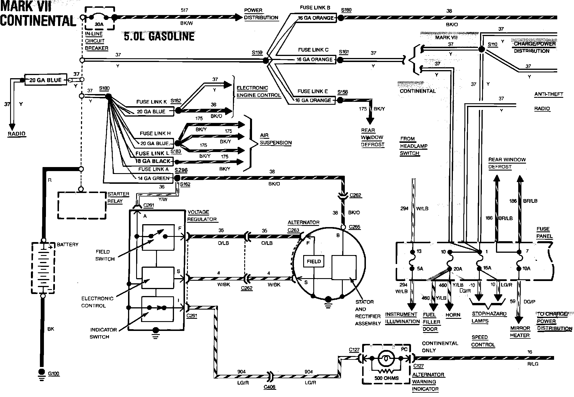 Fig. 12 Charging & Power Distribution Wiring Circuit (Part 1 of 2). Continental & Mark VII: