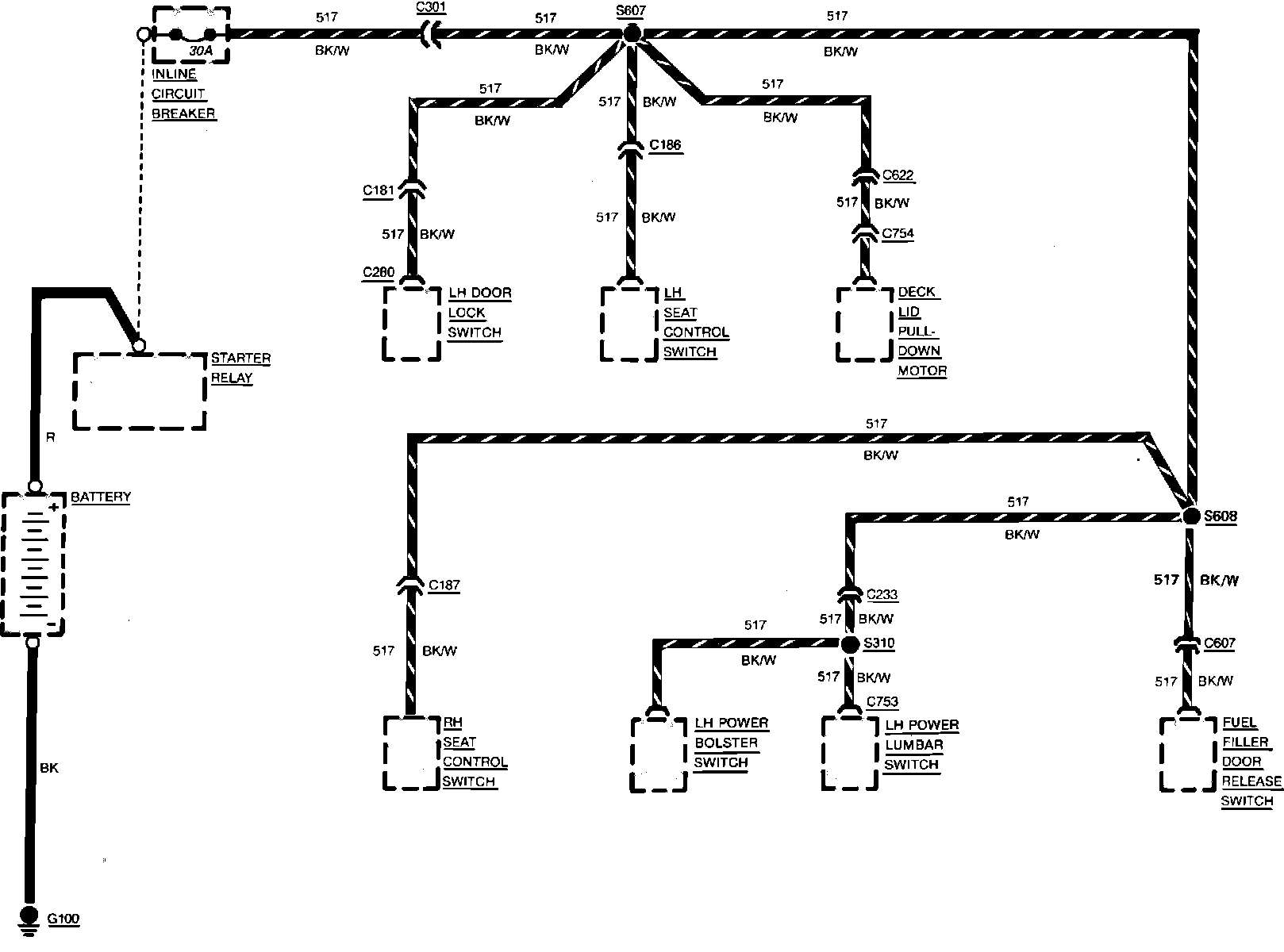 Fig. 65 Power Distribution Wiring Circuit (Circuit 517 Less Keyless Entry). Mark VII:
