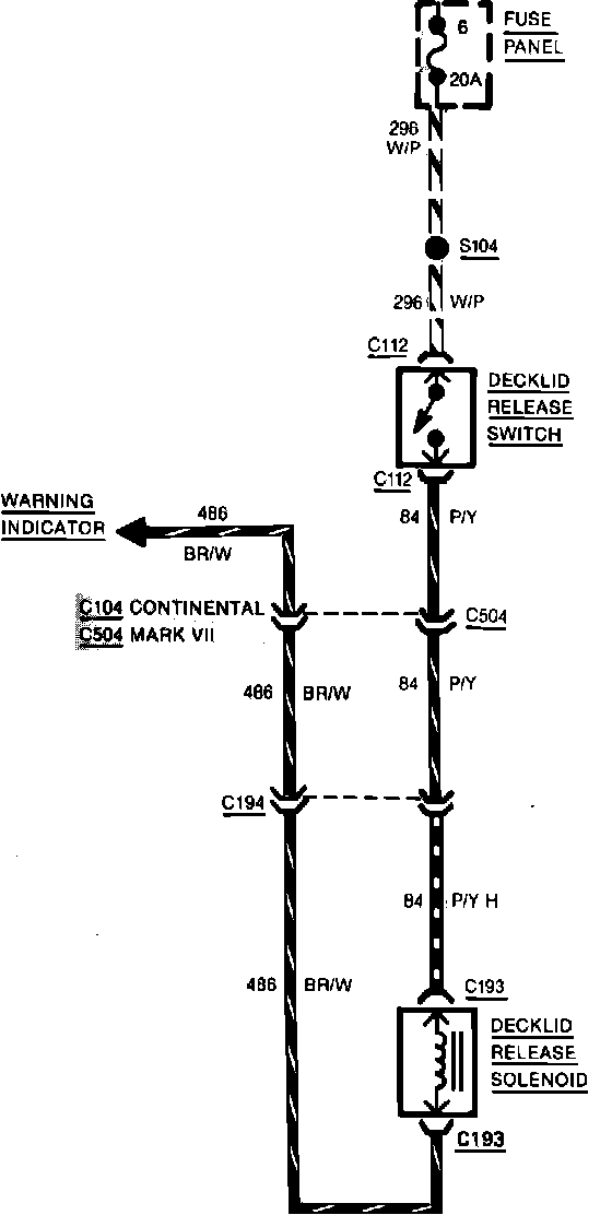 Fig. 84 Deck Lid Release Wiring Circuit. Continental & Mark VII: