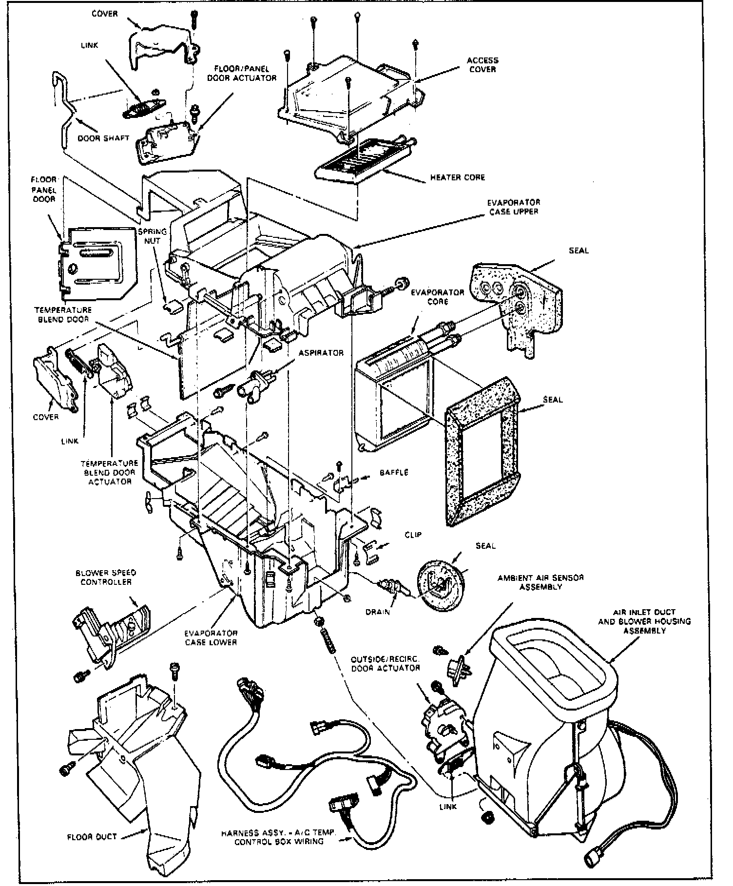 8. Remove heater core access cover to evaporator case attaching screws.