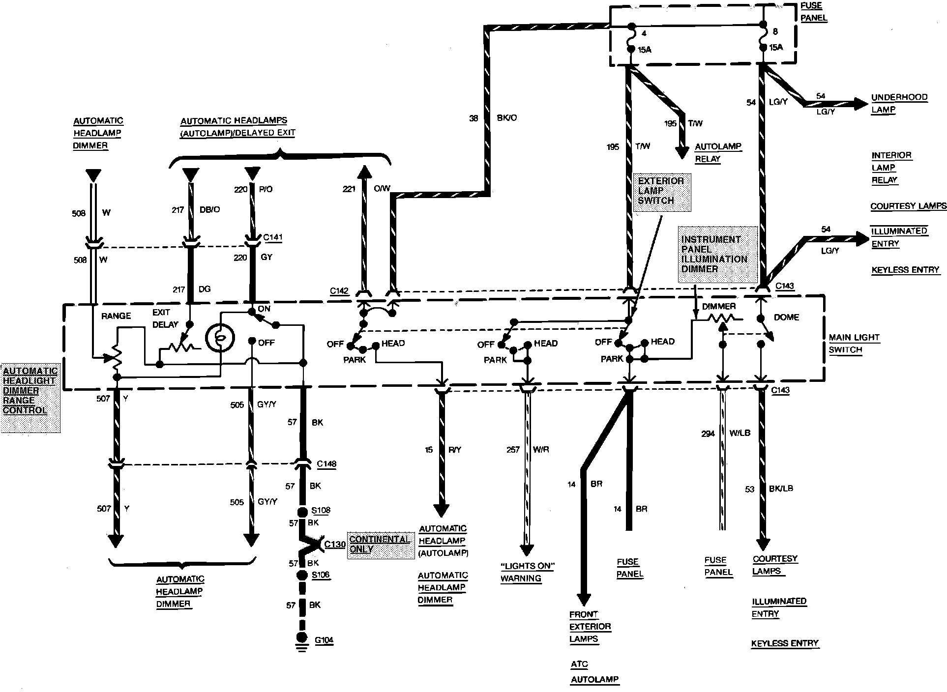 Fig. 59 Power Distribution Wiring Circuit (W/Automatic Headlamps). Continental & Mark VII: