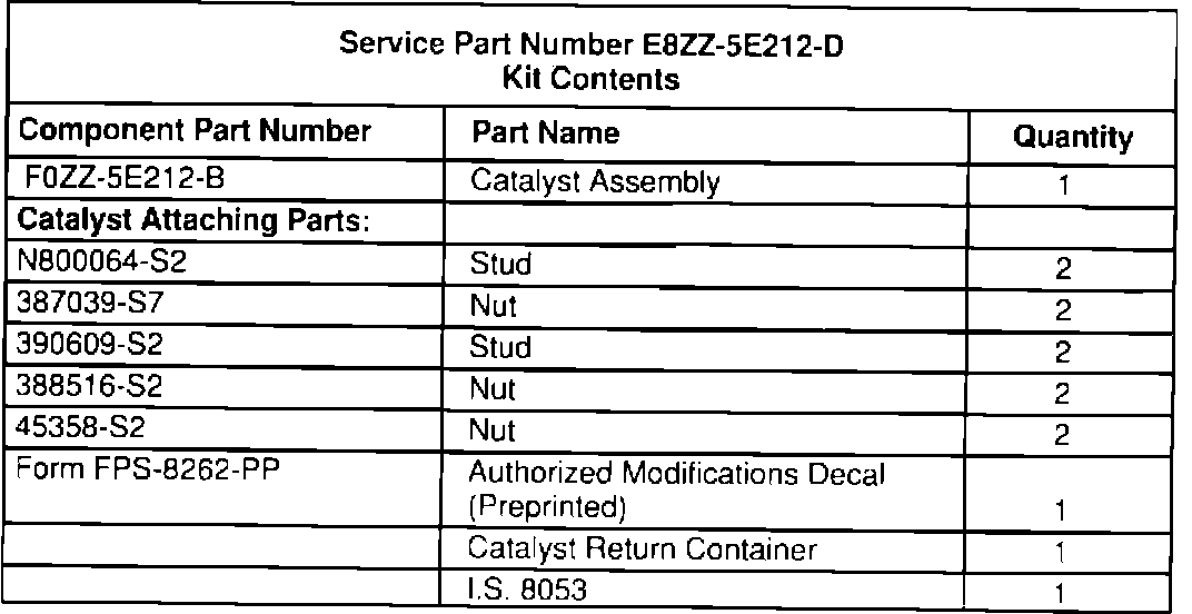 2. Using the following part number information, determine if the catalyst assembly should be replaced.