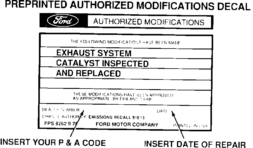 Insert your dealer P&A code, "Emissions Recall 91E13," and the date of service. Affix the decal to a clean, flat surface on the fan shroud. Install the clear overlay over the decal.