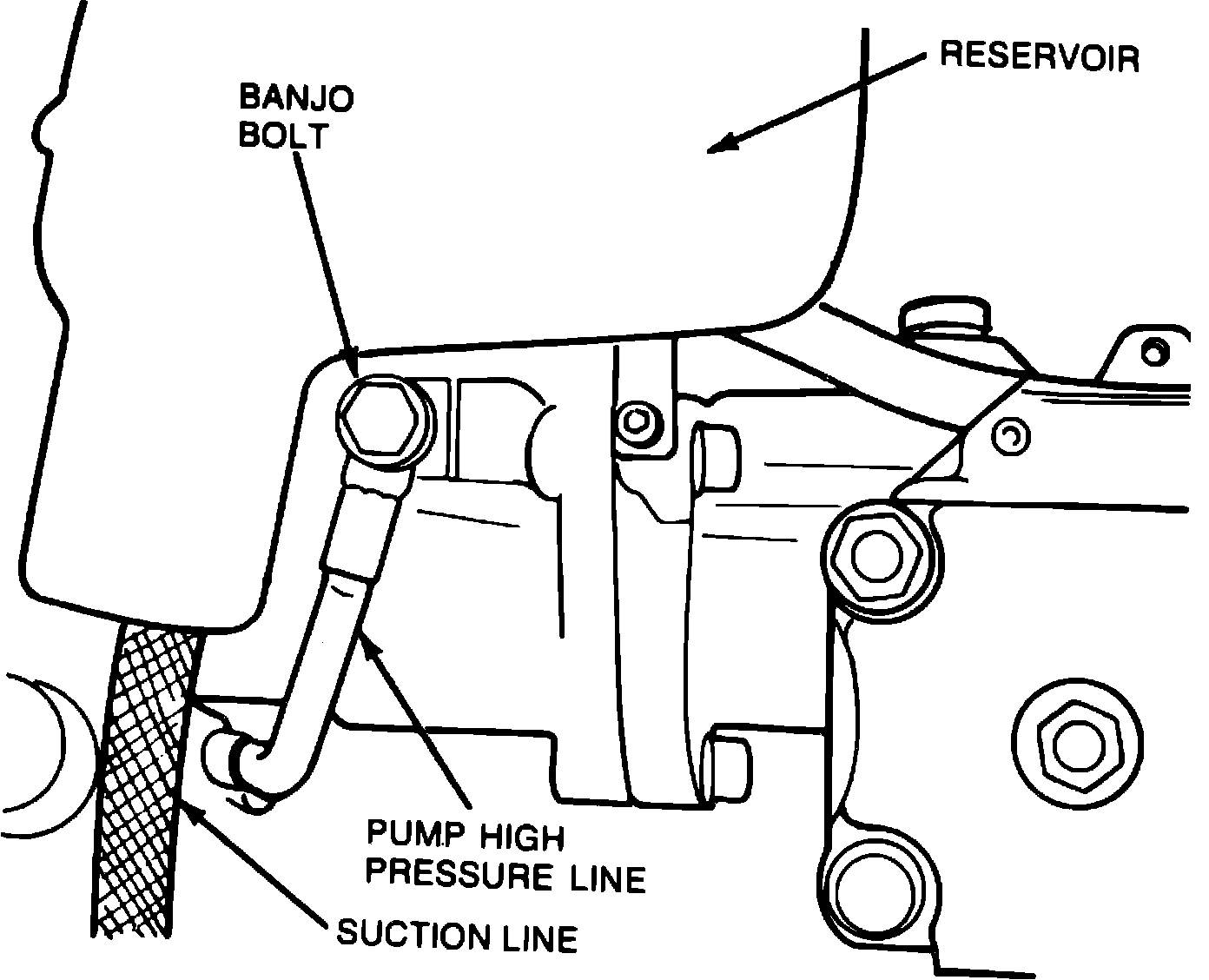 4. Position a large vacuum nipple over reservoir opening to prevent fluid loss, then disconnect suction line between reservoir and pump at pump end by twisting and pulling.