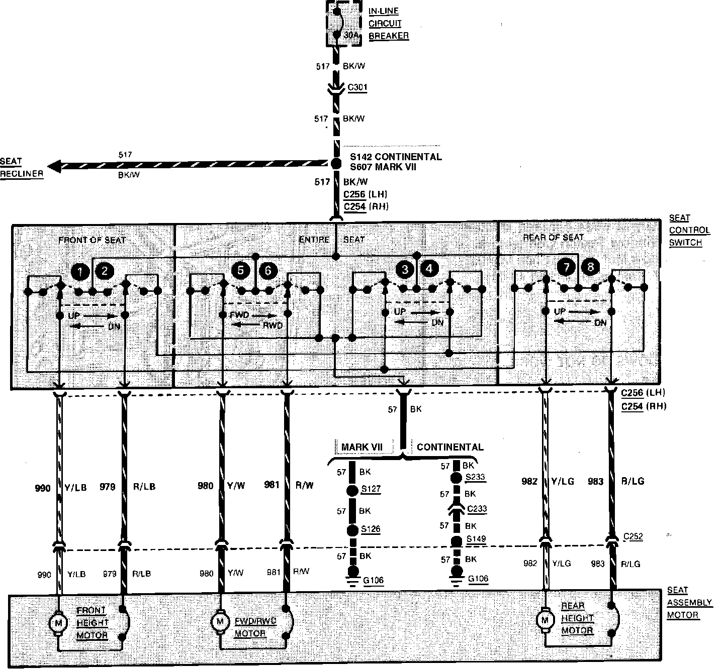 Fig. 75 Power Seats Wiring Circuit. Continental & Mark VII: