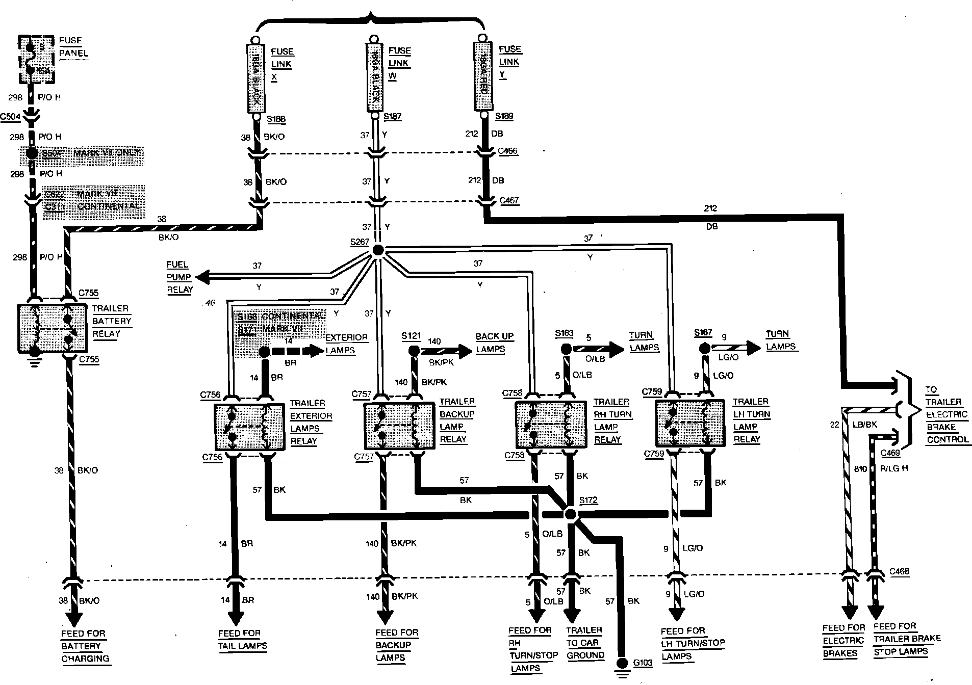 Fig. 83 Trailer Towing Wiring Circuit. Continental & Mark VII: