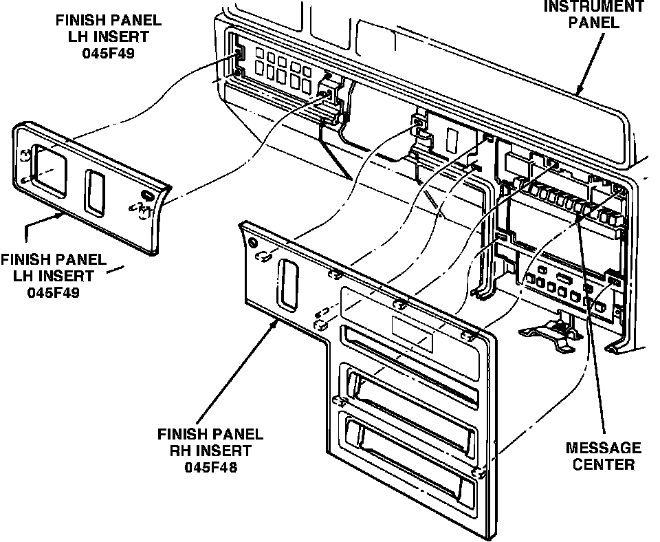 3. Pull finish panel right hand insert from instrument panel and disengage upper tabs of insert from instrument panel.