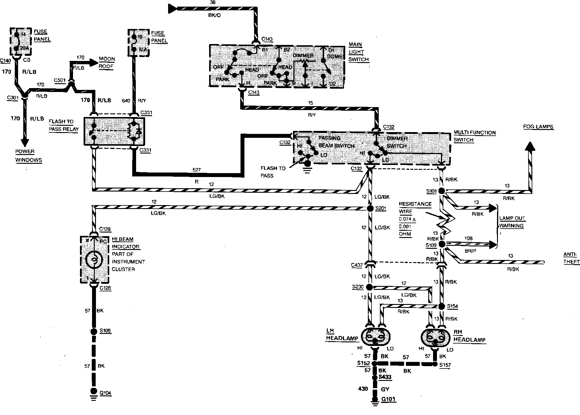 Fig. 37 Headlamps Wiring Circuit. Mark VII Less Automatic Headlamps Or Automatic Headlamp Dimmer: